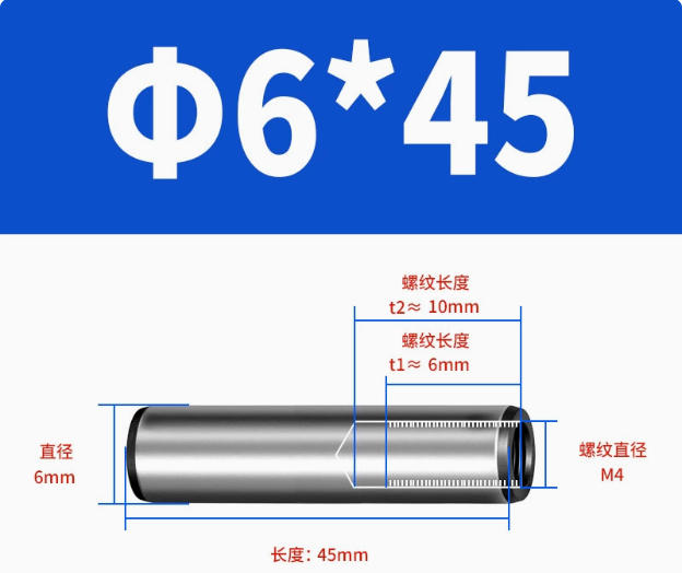 6x45内牙M4(5只)圆柱销