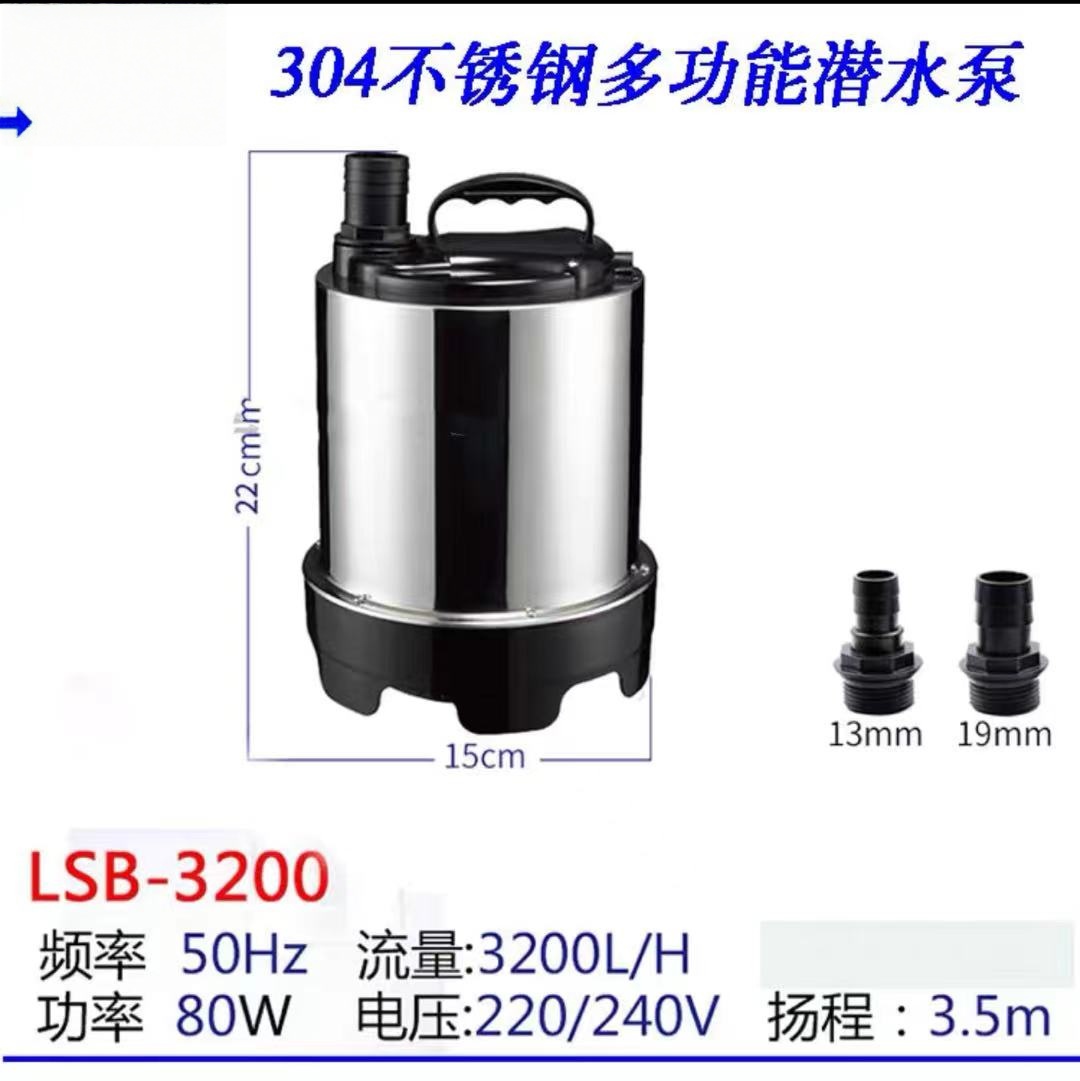 不锈钢潜水泵潜水泵养鱼缸泵 循环水泵 不锈钢排水泵 耐腐蚀多功能泵