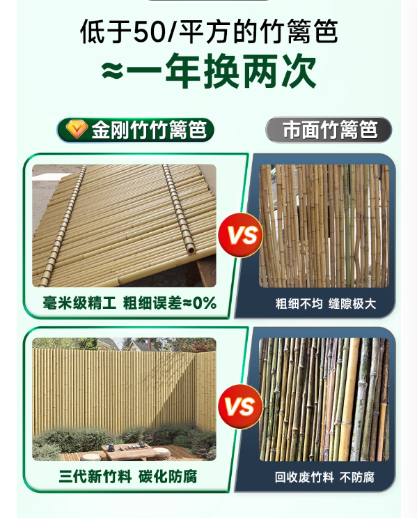 【金刚竹™】碳化竹 高1.2米X长2米